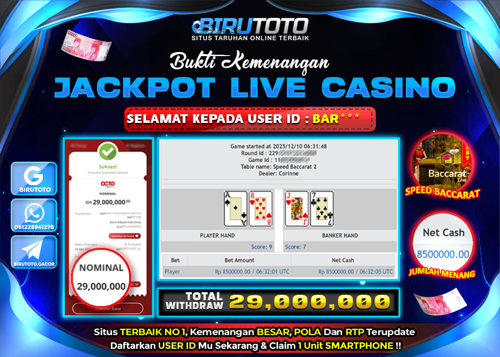 BIRUTOTO JACKPOT LIVE CASINO BACCARAT LOBBY Rp.15.000.000 LUNAS
