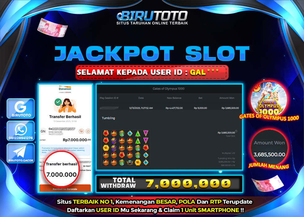 BIRUTOTO JACKPOT SLOT GATES OF OLYMPUS 1000 Rp.7.000.000 LUNAS