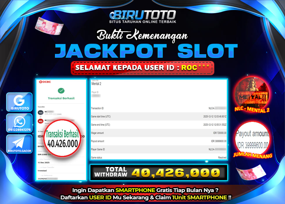 BIRUTOTO JACKPOT SLOT NLC - MENTAL 2 Rp.40.426.000 LUNAS